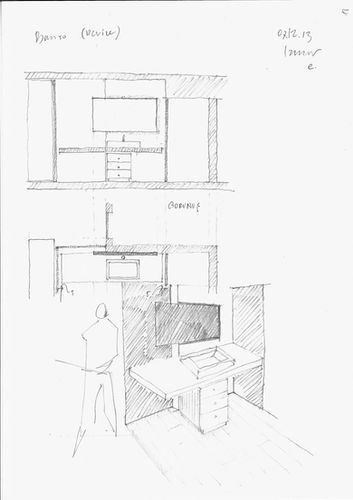 Originally two different flats, transformed into a duplex unit giving the entrance of the studio loft, an open spacious area with a double height ceiling. One step inside and you enter the photographic studio and exhibition area. Solving the height restriction problem with a vaulted ceiling is a guest bathroom, at the back on the same floor. Providing a sense of being inside a futuristic space by the material choices of the bathroom with their reflective surfaces. Which also serves as an extraordinary photography setting. Connecting the ground floor to the upper floor and highlighting the dynamism and rhythm of the circulation inside the space is a sculptural staircase designed with no side railings on either side. With the photographic studio and an exhibition space on the ground floor, other functions are planned on the upper floor which mainly consists of office space, kitchen area, sleeping and private resting zone at the far end of the open plan living space. The kitchen is planned as a social space for cooking, eating and relaxing, which reflects the owners lifestyle, who loves to cook for his guests.