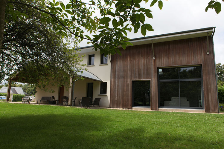 In 2001, the initial owner needed a house build according to the French RT 2005 energy regulations by incorporating wood and metal, spacious rooms and geothermal heating. The house required to be accommodated into an ancient orchard located in the Pluvigner village of South Brittany.