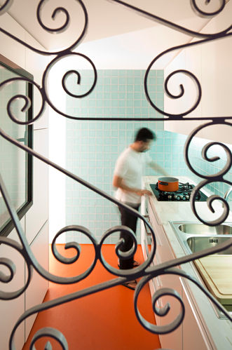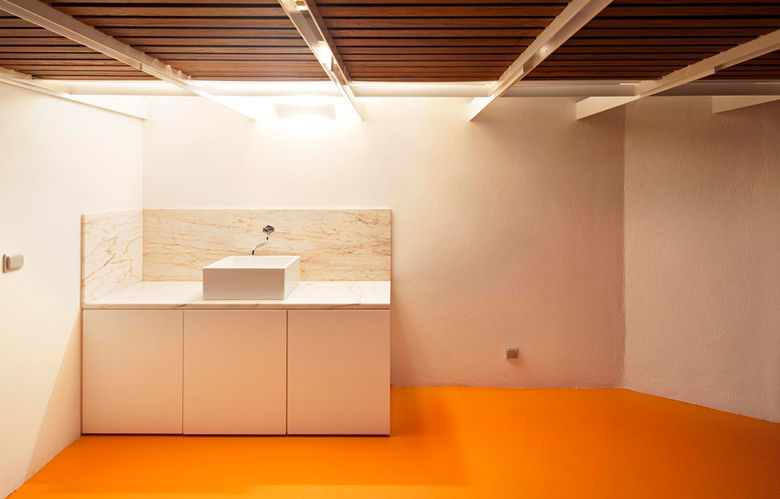 Various spaces were reconfigured to improve the functionality of the house: the entrance hall, which led to a bathroom and the kitchen, became a silent transitional space between the street and the living room; the kitchen became accessible from the dining room; the bathroom in the upper floor, which was too indented, assumed a central stance in the body of the house; the terrace, by means of a system of moveable shutters, became a second living room.