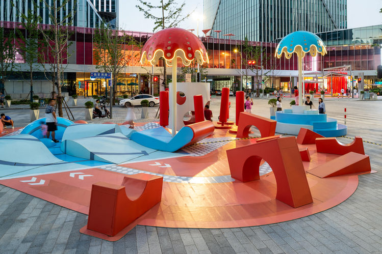 Crystal Pool is a creative public space intervention designed for the grand opening of a new mixed-use complex located in the New Bund, the emerging international business center in Pudong (Shanghai), with the aim of fostering entertainment & social interactions among new visitors, appealing to kids, youngsters & adults alike.