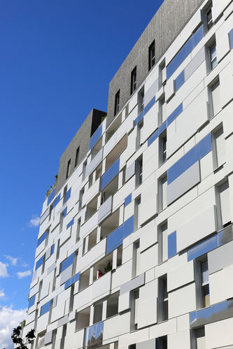The housing building "I-Park" facing the new town hall of Montpellier, is a building of eight levels in variable layers designed by NBJ Architectes, developed through a process of dialogue with the city of Montpellier, the equipment company of the Montpelliéraine region, Jean Nouvel, chief architect of the ZAC, and the promoter Pragma.