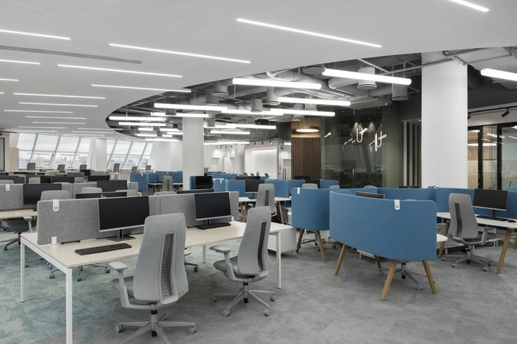 The office is designed in agile format, allowing adjustment in the arrangement of workplaces with portable furniture depending on team requirements. The work areas are planned along the facade windows that firstly offer employees a Moscow view and secondly taking maximum advantage of natural light. The centrally planned conference room represents dimensions of various formats; arranging brief face-to-face meeting with many participants is possible. When designing conference room the designers were inspired by the cosmetic packing, for finishing they used the current quotations of the company as if pen scripted.