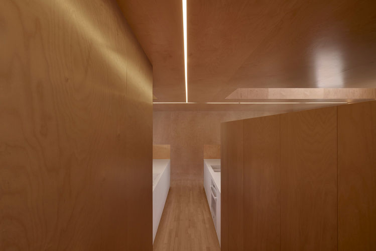 Playing with positive and negative spaces, the proposal articulates a crystallization fragmenting the volumetric entity by a physical and visual permeability, altering the perceptions of dimensioning. Opting for the subtraction of floor areas in favor of spatial qualities, volumes and interstices compose a domestic ecosystem of rows and vis-à-vis. Livened up by the constant variability of color shades, enlivened by the seasons and the natural light coming from the garden adjoining the living space, the MB project manifests the expression of these external parameters on its unifying monomateriality. Associated with its urban context and the flow of dynamic interactions generated by its internal conditions, including the movements of users and their way of living, a rhythmic versatility stands out in contrast to the geometric rigor of the assemblage.
