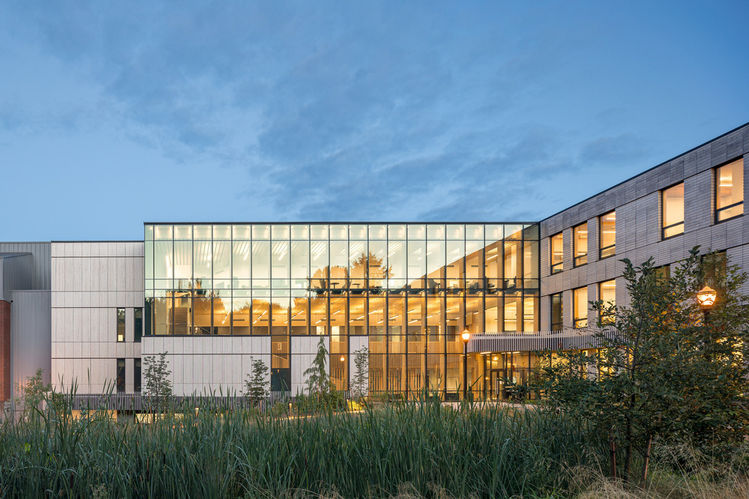 The new George W. Peavy Forest Science Center (83,000 sq. ft.) is connected to the complex natural layers, systems, and networks of a forest, from soil to sky. The building is designed as two intersecting bars, connected to the existing Richardson Hall. A simple academic bar features 20 classrooms, computer rooms, and laboratories. Classroom and lab spaces range from small to large and interior to exterior, facilitating a range of teaching styles in an inspiring environment for students to study all aspects of the forest landscape. Timber stairwells filled with natural light flank both ends of the academic corridor to connect the landscape and enhance intuitive wayfinding.