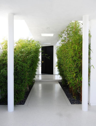 The pad area was enlarged by building retaining walls on all three sides of the garden area and thereby creating the space for a curved infinity pool that followed the contours of the topography and the water edge was designed purposely to blend in with the distant view of downtown. In order to create enough space for a pool, the existing living room was demolished; for not only did it offer limited openings to the garden, it certainly lacked any perspective of downtown. The newly design space allows the entire living room area to be open on three sides and thereby creating a seamless flow between the inside and outdoor.