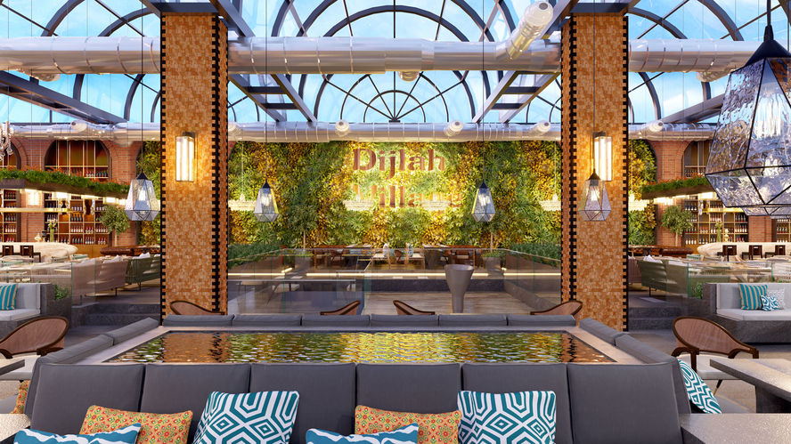 Situated in Baghdad, Iraq, Shisha Lounge blends tradition with sustainability. The idea was to create a new appeal for an exceedingly well-known theme of an oriental shisha hall. With a seating capacity of 350 people and a magnificent view of the Dijlah River. The rich history of Babylon Culture is reflected in the design of the Shisha Lounge.