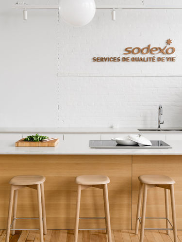 The innovative design of Sodexo Montreal offices follows standards of excellence for the health and wellness of users. The rigorous work of the design-build team puts forward the quality of air, water, light, sound, and materials to create a healthy and sustainable environment. The spaces promote movement and the spirit of community. The importance of nourishment, Sodexo's primary activity, is highlighted by the show kitchen accessible to both chefs and office staff. The principles of biophilia ensure a human and natural character to workspaces. The abundance of plants and daylight, the views to the outside, wood, and natural colors are the basis of the design and create the distinctive portrait of the project. This approach demonstrates the company's commitment to its community and is fundamental to the concept of Quality of Life Spaces.
