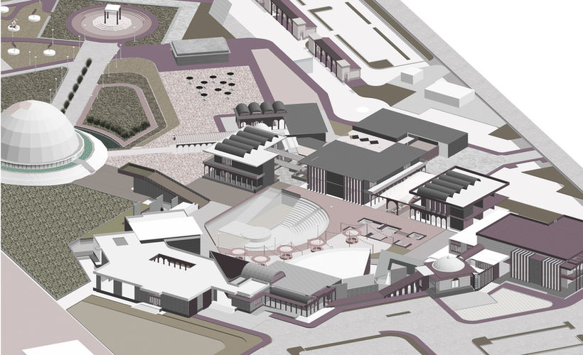 This zone is dedicated for the interaction between the NGO’S coming to the Complex for Dialogue and the kids and youth in the Performance Centre. The zone is intended to promote social work and charity bazars-a symbol of commonness in all religions